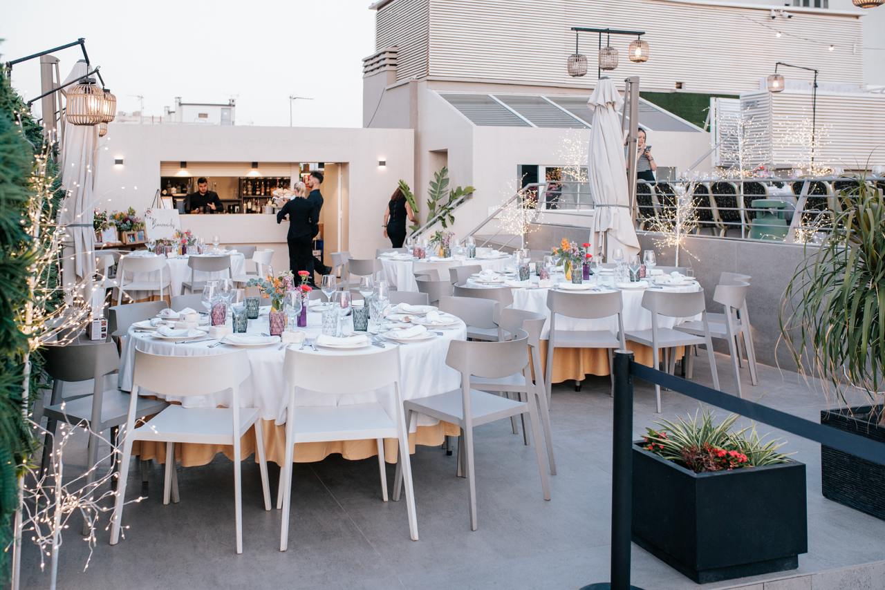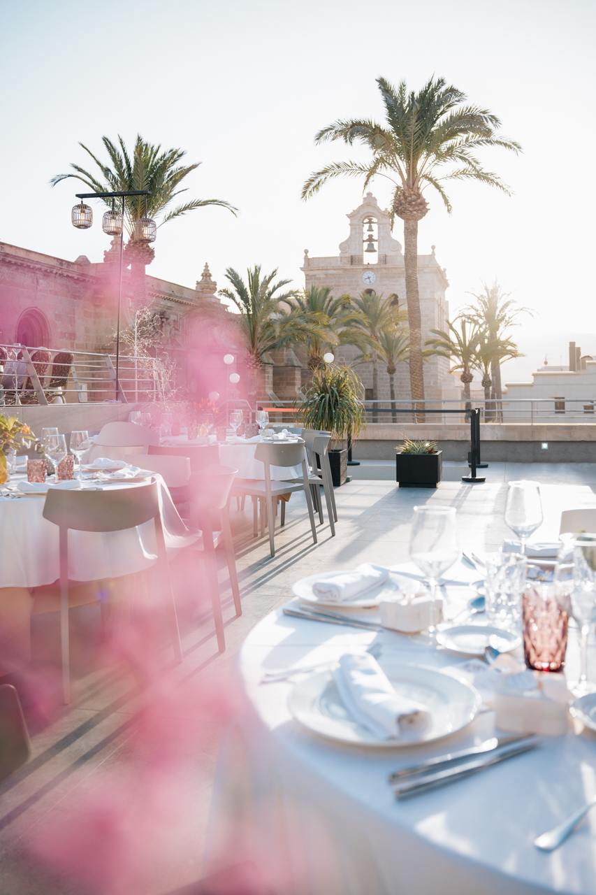 Our rooftop offers an exclusive atmosphere with stunning views of the Cathedral and the city of Almería. It is the perfect setting for cocktails, product launches, or personal celebrations under the Almería sky.