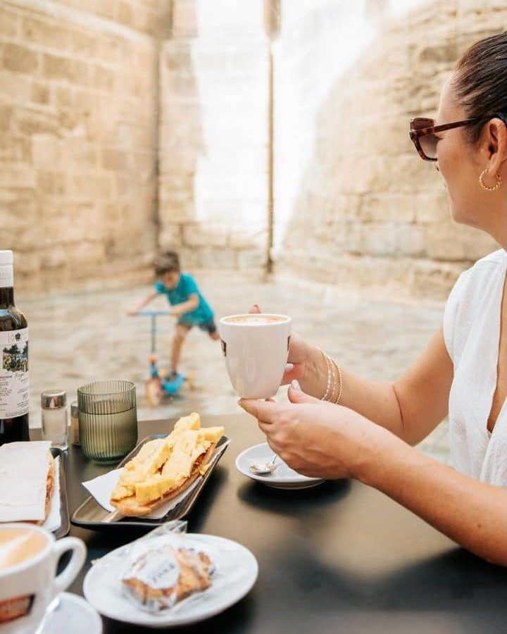 Desayunos a la carta en la terraza: Disfruta de la tranquilidad de la peatonal Calle Cubo, a solo 5 metros de la majestuosa Catedral de Almería. Si vienes con peques, ¡podrán jugar libremente a los pies de la Catedral, mientras te relajas con tu café sin perderles de vista!